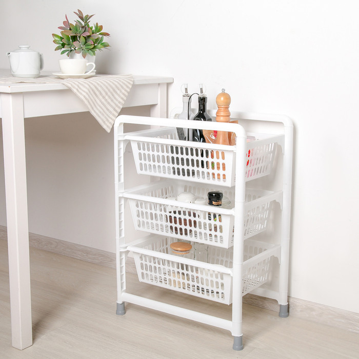 Удобная этажерка, легко собирается,корзины вместительные, для овощей очень удобно.