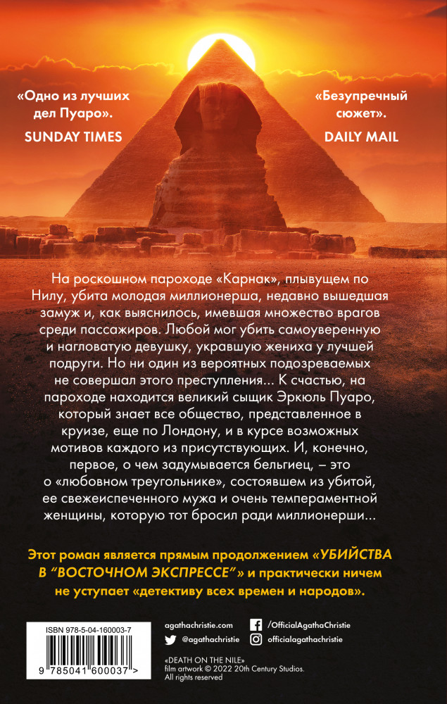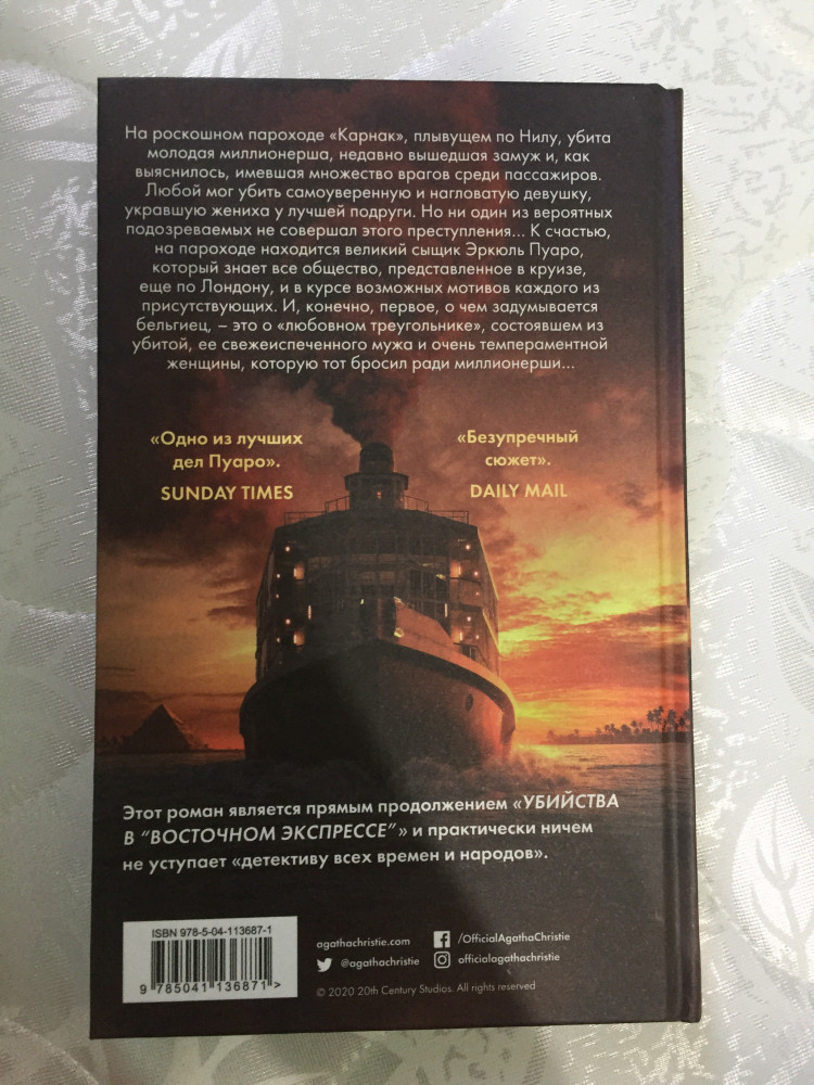 Отличная книга в отличном состоянии. Очень красивая обложка от студии 20 век фокс. Книга ОООЧЕНЬ интересная. Классический детектив с Пуаро. Пока не закончила книгу, но очень интригует.