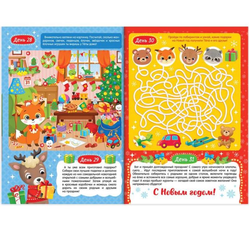 прекрасный новогодний набор! есть и календарь, и письмо для деда Мороза, и раскраски необычные, и море наклеек многоразовых. все яркое и содержательные. ребенок все праздничные дни может заниматься! спасибо!
