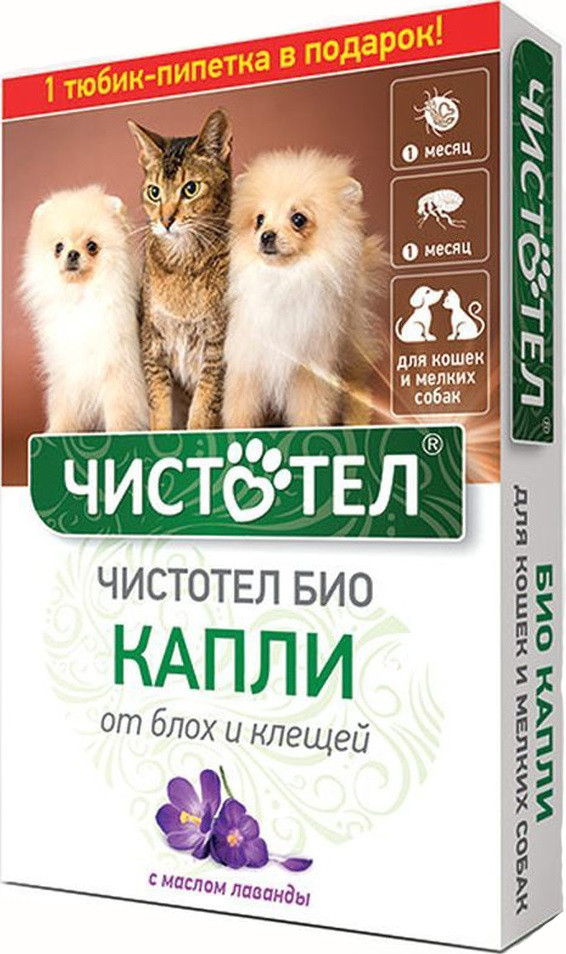 Чистотел Капли от блох и клещей с лавандойВ данный момент этот товар отсутствует в продаже. Возможно, у нас найдется аналогичный или похожий товар здесь. Капли для кошек и мелких собак, от блох и клещей. Усиленная формула за счет масла лаванды — природного репеллента. Входящие в состав эфирные масла оказывают не только отпугивающее действие, но и способствуют уменьшению раздражения и зуда. Подходит склонным к аллергии, больным, выздоравливающим и беременным животным. |