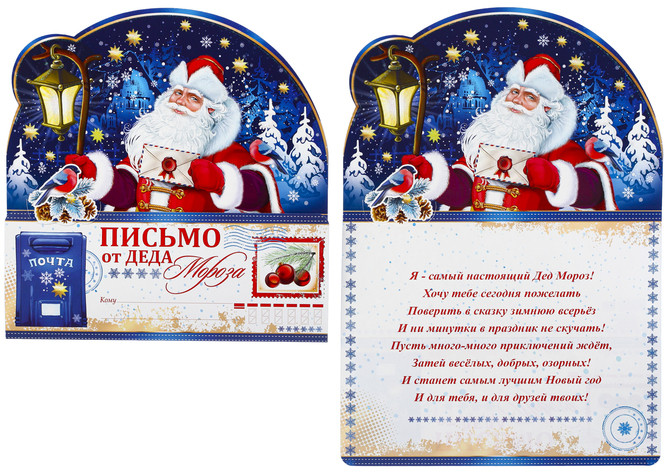 ФДА-card Открытка «Письмо от Деда Мороза»В данный момент этот товар отсутствует в продаже. Возможно, у нас найдется аналогичный или похожий товар здесь. Серия: Новый год Письмо от Дедушки Мороза принесет огромную радость ребенку! Выполненное на красивой бумаге, настоящее письмо от новогоднего волшебника вызовет восторг и позволит почувствовать новогоднее волшебство. |