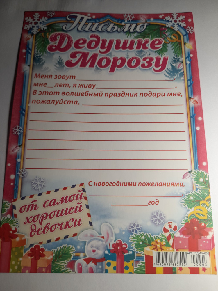 ЛиС Письмо Деду Морозу «От самой хорошей девочки»В данный момент этот товар отсутствует в продаже. Возможно, у нас найдется аналогичный или похожий товар здесь. Серия: Новый год Как Дед Мороз узнает о том, какой подарок вы мечтаете получить? Конечно, с помощью новогоднего письма! Его яркий оригинальный дизайн привлечёт внимание получателя и он, непременно, исполнит ваше желание в первую очередь! Настоящий ответ от Деда Мороза можно получить только в случае, если послание будет отправлено по всем требованиям волшебной почты. Письмо нужно отправлять заранее (в начале декабря), ведь у дедушки и его преданных помощников так много работы, что они могут просто не успеть ответить всем ребятишкам вовремя. |