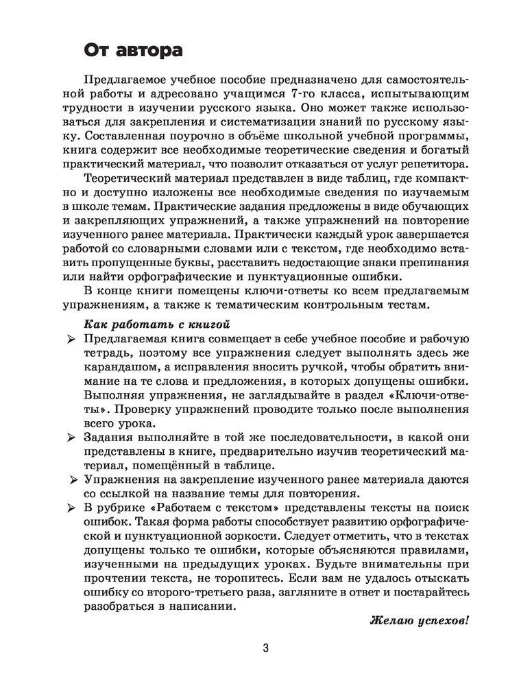 💳 Оплатить за товар можно при получении 🇰🇿 Есть бесплатная доставка по Казахстану от 1 дня 🎁 Копите бонусы с каждой покупки Серия: Учебная. Русский язык Книга адресована учащимся 7 класса, испытывающим трудности в изучении русского языка. Она составлена так, чтобы ребенок мог сам легко и быстро усвоить материал школьной программы. Пособие содержит все необходимые теоретические сведения и разнообразные практические задания, тем самым совмещая в себе учебное пособие и рабочую тетрадь, поэтому все упражнения можно выполнять прямо в книге. Здесь же приводятся ключи-ответы ко всем упражнениям и тестам. Новая редакция содержит существенные улучшения и дополнения и еще ближе к школьной программе. |