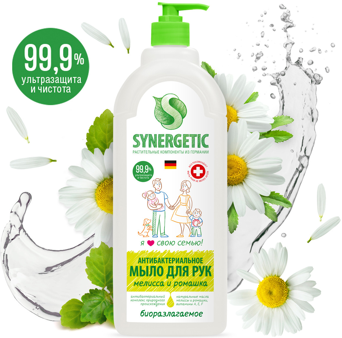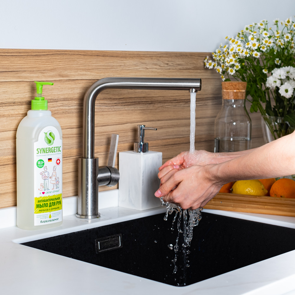 Synergetic Мыло жидкое для мытья рук и тела «Мелисса и ромашка»