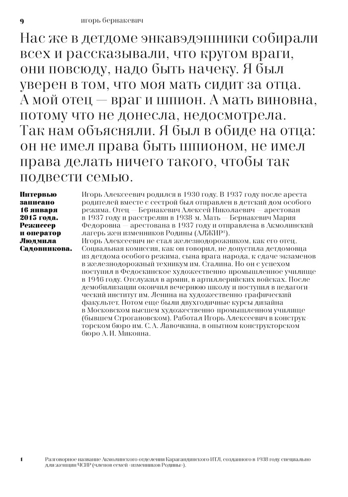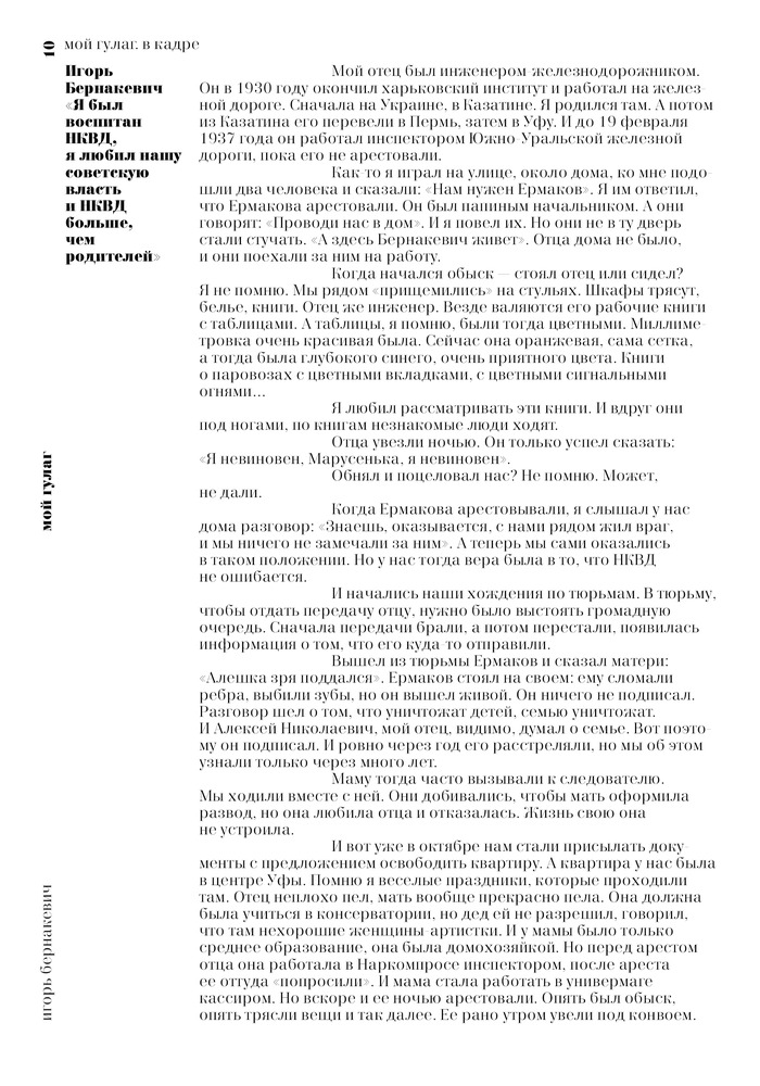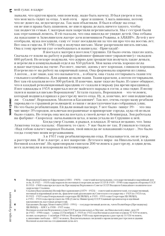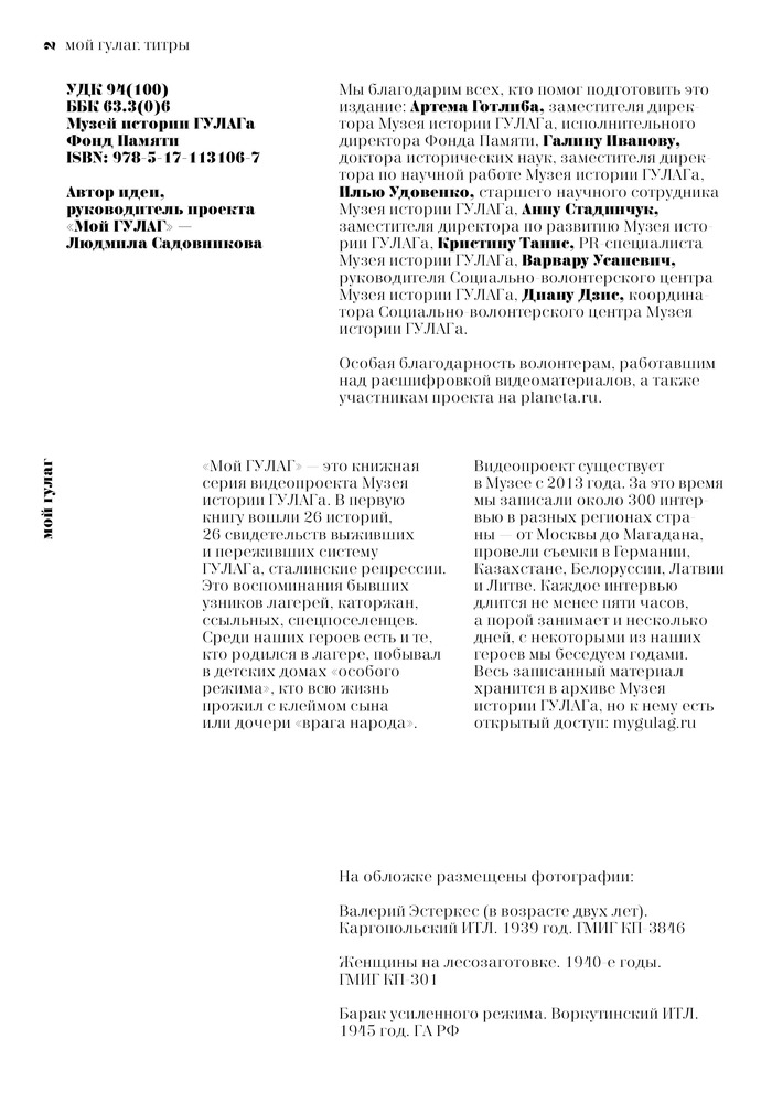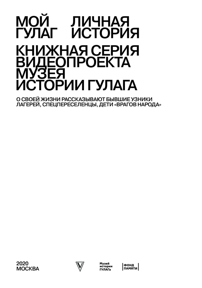Мой ГУЛАГВ данный момент этот товар отсутствует в продаже. Возможно, у нас найдется аналогичный или похожий товар здесь. Серия: Человек в истории «Мой ГУЛАГ» — это книжная серия видеопроекта Музея истории ГУЛАГа. В первую книгу вошли живые свидетельства переживших систему ГУЛАГа и массовые репрессии. Это вопоминания бывших узников советских лагерей (каторжан, узников исправительно-трудовых и особых лагерей), представителей депортированных народов, тех, кто родился в лагере и первые годы жизни провел в детском баракеили после ареста родителей был отправлен в детские дома «особого режима» и всю жизнь прожил с клеймом сына или дочери «врага народа». Видеопроект существует в Музее с 2013 года. За это время мы записали более 300 интервью в разных регионах страны — от Москвы до Магадана, провели съемки в Германии, Казахстане, Белоруссии, Латвии и Литве. Весь записанный материал хранится в Музее истории ГУЛАГа и доступен по адресу: mygulag.ru |