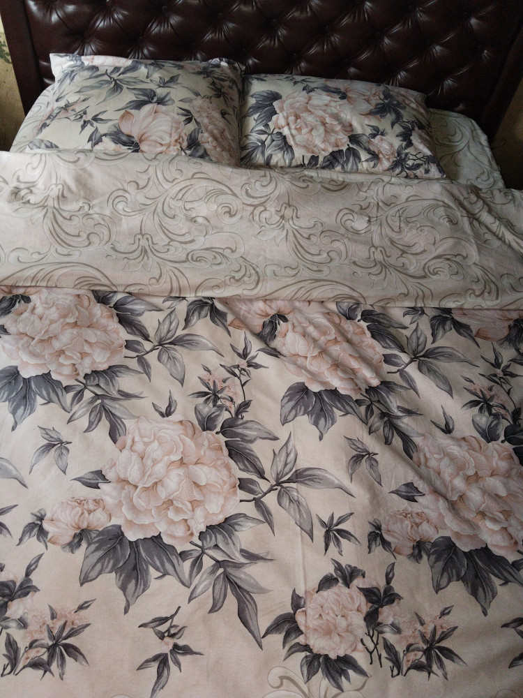 Нежный комплект, всегда беру поплин,нравится в использовании,не скатывается, не теряет цвет! Очень довольна!