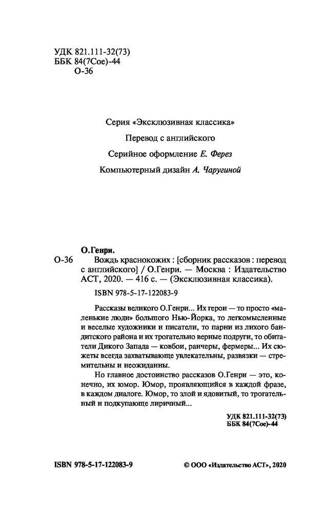 💳 Оплатить за товар можно при получении 🇰🇿 Есть бесплатная доставка по Казахстану от 1 дня 🎁 Копите бонусы с каждой покупки Серия: Эксклюзивная классика Рассказы великого О. Генри... Их герои — то просто «маленькие люди» большого Нью-Йорка, то легкомысленные и веселые художники и писатели, то парни из лихого бандитского района и их трогательно верные подруги, то обитатели Дикого Запада — ковбои, ранчеры, фермеры... Их сюжеты всегда захватывающе увлекательны, развязки — стремительны и неожиданны. |