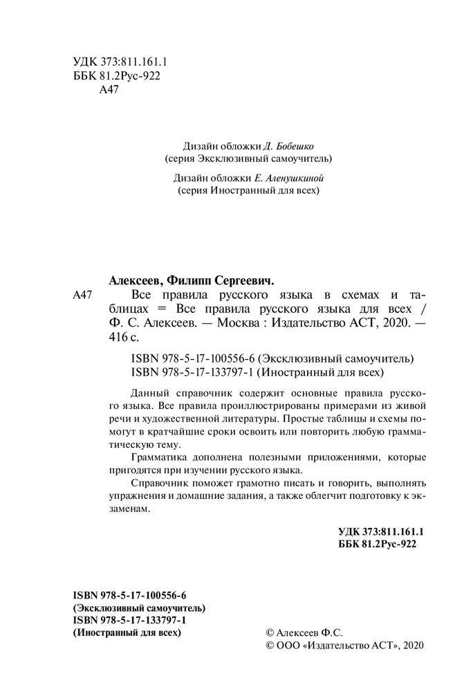 Серия: Иностранный для всех Данный справочник содержит основные правила русского языка. Все правила проиллюстрированы примерами из живой речи и художественной литературы. Простые таблицы и схемы помогут в кратчайшие сроки освоить или повторить любую грамматическую тему. |