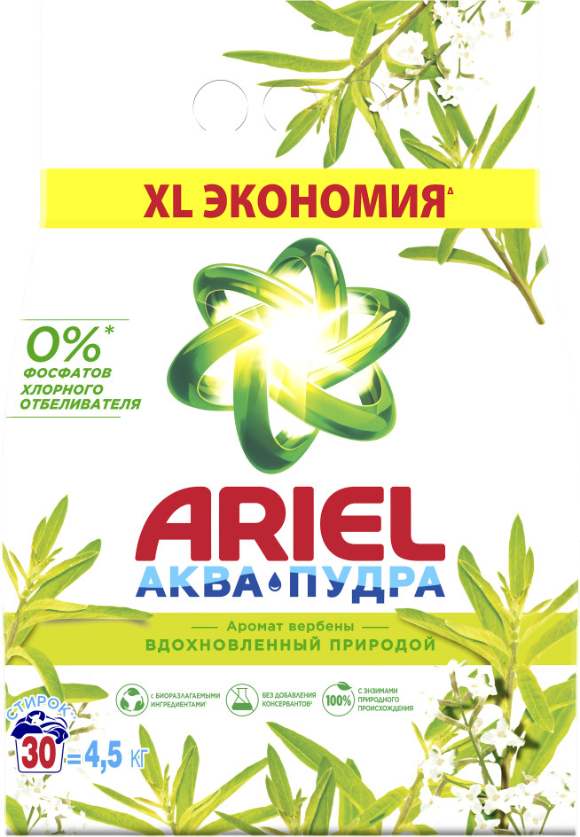 Ариэль всегда на высоте. Отстирывает,не оставляет после стирки следов. После стирки с порошком этого запаха (вербена),не обязательно пользоваться кондиционером . К покупке рекомендую.
