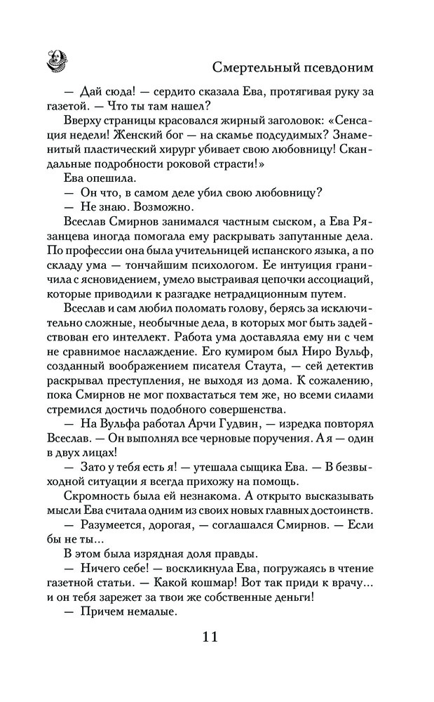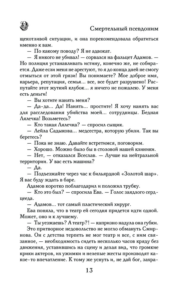 Смертельный псевдонимВ данный момент этот товар отсутствует в продаже. Возможно, у нас найдется аналогичный или похожий товар здесь. Серия: Мистический детектив Молодой актер театра «Неоглобус» Кристофер Марло утверждает, что он тайный агент королевы Елизаветы и современник самого Шекспира! Верить ему или нет? Особенно после того, как он рассказывает Еве о своей скорой смерти и берет с нее клятву — после его гибели прийти в глухой московский переулок, где призрак Кристофера назовет имя убийцы. Конечно, Ева не верит в жуткие фантазии актера. Но вскоре тот погибает. Страшное предвидение сбывается! Что же делать?! Ведь Ева дала слово! |