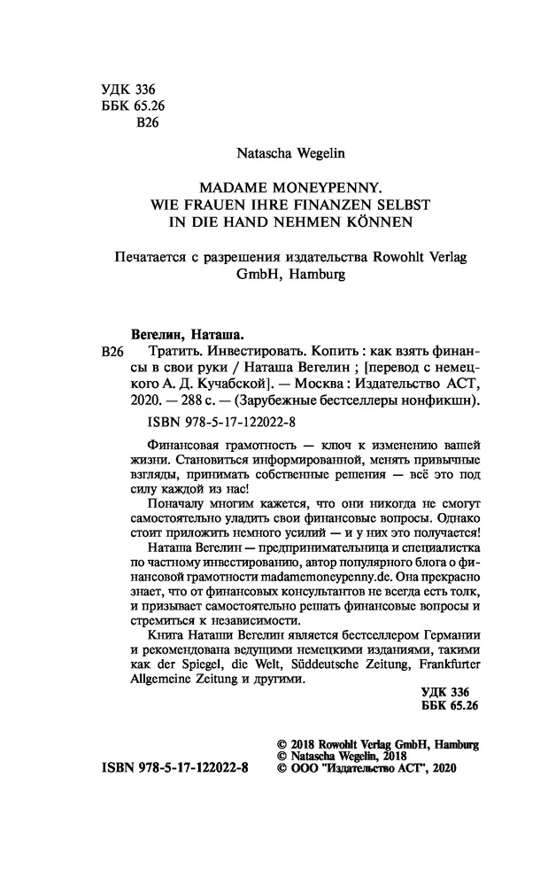 Серия: Зарубежные бестселлер. Нонфикшн Финансовая грамотность — ключ к изменению вашей жизни. Становиться информированной, менять привычные взгляды, принимать собственные решения — всё это под силу каждой из нас! |