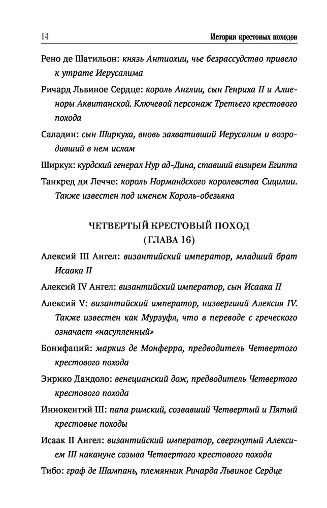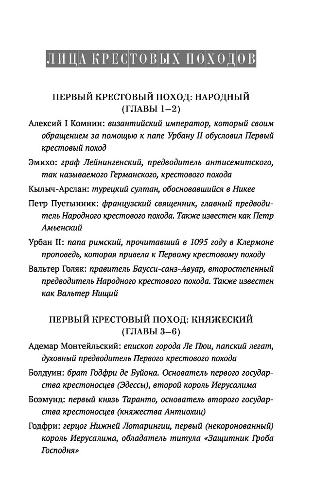 Когда увидела эту книгу, купила не раздумывая и не жалею. Отлично описываются все периоды крестовых походов и исторические персонажи. Для тех кто заинтересован в этой теме - книга настоящая находка. Очень рекомендую. Читается легко и информация доступно изложена.