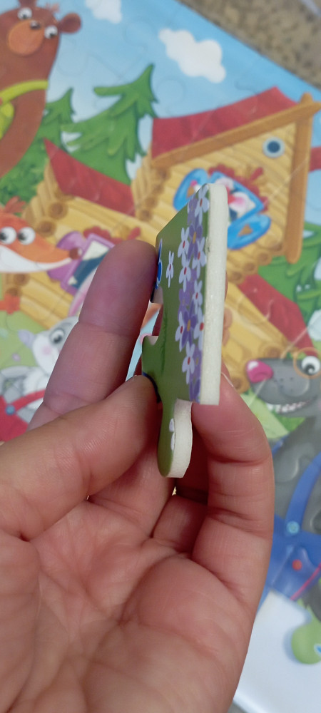 Была удивлена размером пазла-больше формата А4, яркие краски, милая картинка. Детали крупные.Удобно держать в руке👍