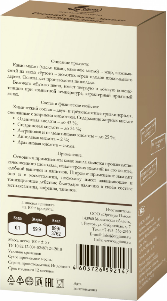 Оргтиум Масло какао горячего отжима