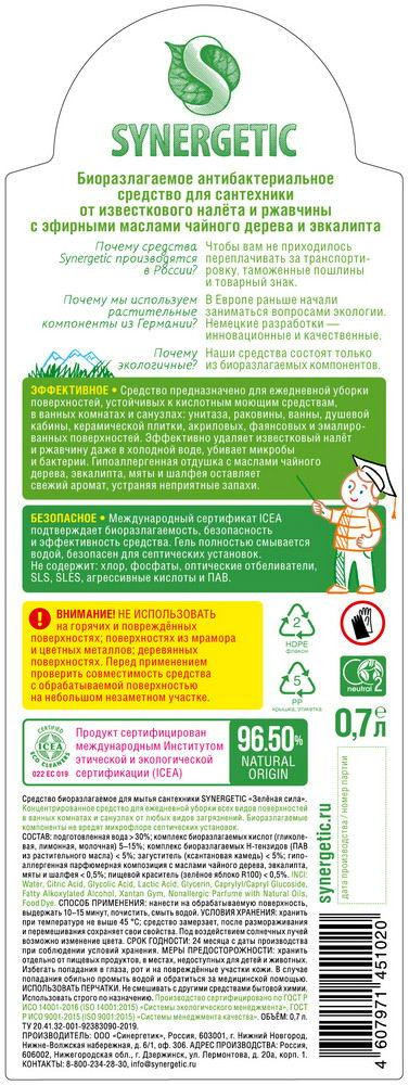 Synergetic Средство биоразлагаемое для мытья сантехники «Зеленая сила»