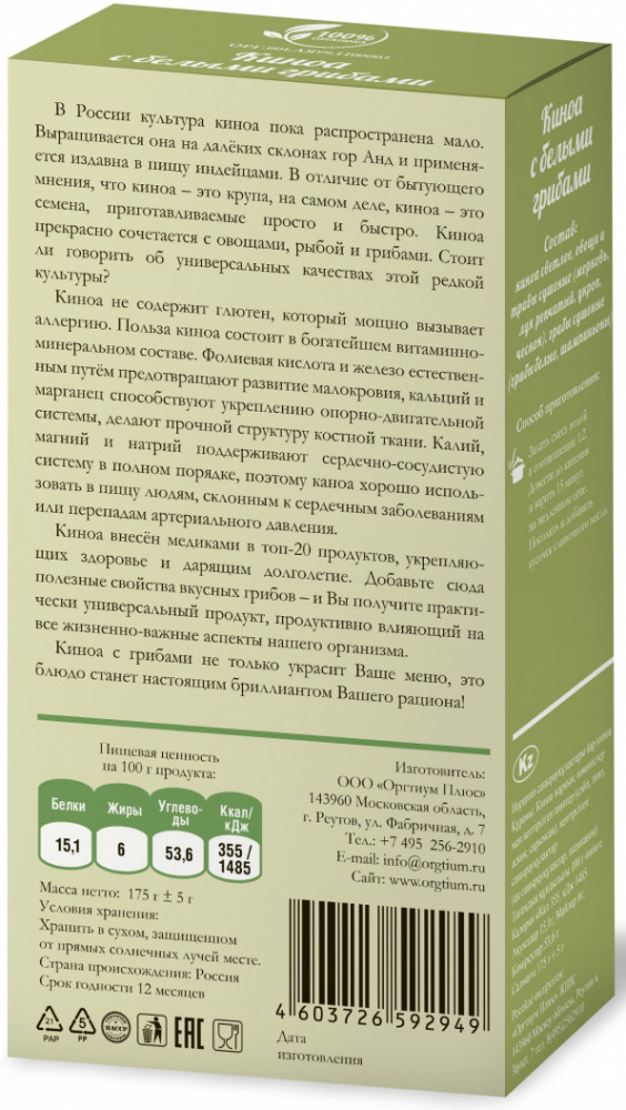 Калий, магний и натрий поддерживают сердечно-сосудистую систему в полном порядке, поэтому киноа хорошо использовать в пищу людям, склонным к сердечным заболеваниям или перепадам артериального давления. Киноа внесён медиками в топ-20 продуктов, укрепляющих здоровье и дарящим долголетие. Добавьте сюда полезные свойства вкусных грибов и Вы получите практически универсальный продукт, продуктивно влияющий на все жизненно-важные аспекты нашего организма. Киноа с грибами не только украсит Ваше меню, это блюдо станет настоящим бриллиантом Вашего рациона!