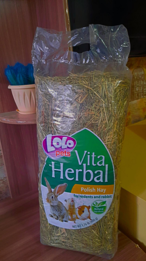 Немного разочарована. Раньше брали сено в другой расфасовке, кролик ел. Это сено желтое, пыльное. Практически не ест, пришлось покупать другое.