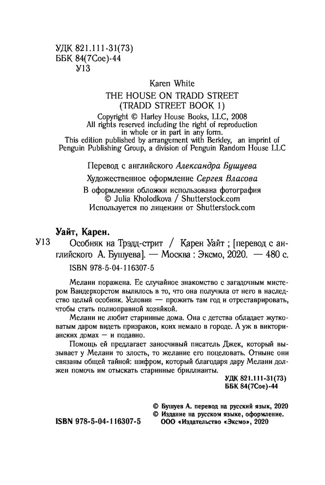 💳 Оплатить за товар можно при получении 🇰🇿 Есть бесплатная доставка по Казахстану от 1 дня 🎁 Копите бонусы с каждой покупки Серия: Зарубежный романтический бестселлер. Романы Сары Джио и Карен Уайт (обложка) Мелани поражена. Ее случайное знакомство с загадочным мистером Вандерхорстом вылилось в то, что она получила от него в наследство целый особняк. Условия — прожить там год и отреставрировать, чтобы стать полноправной хозяйкой. |