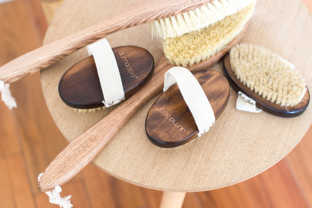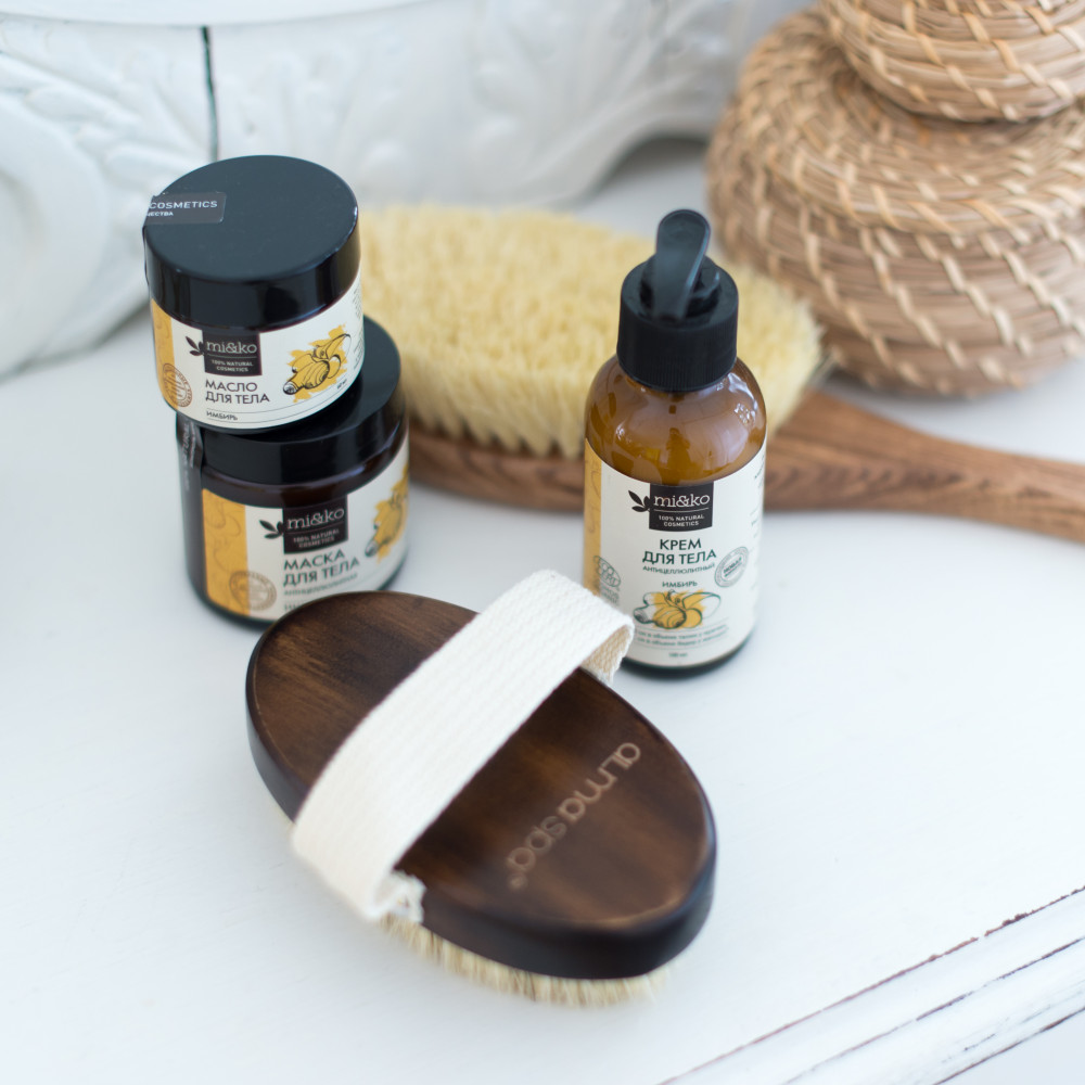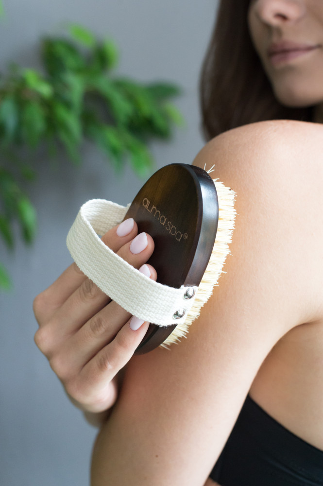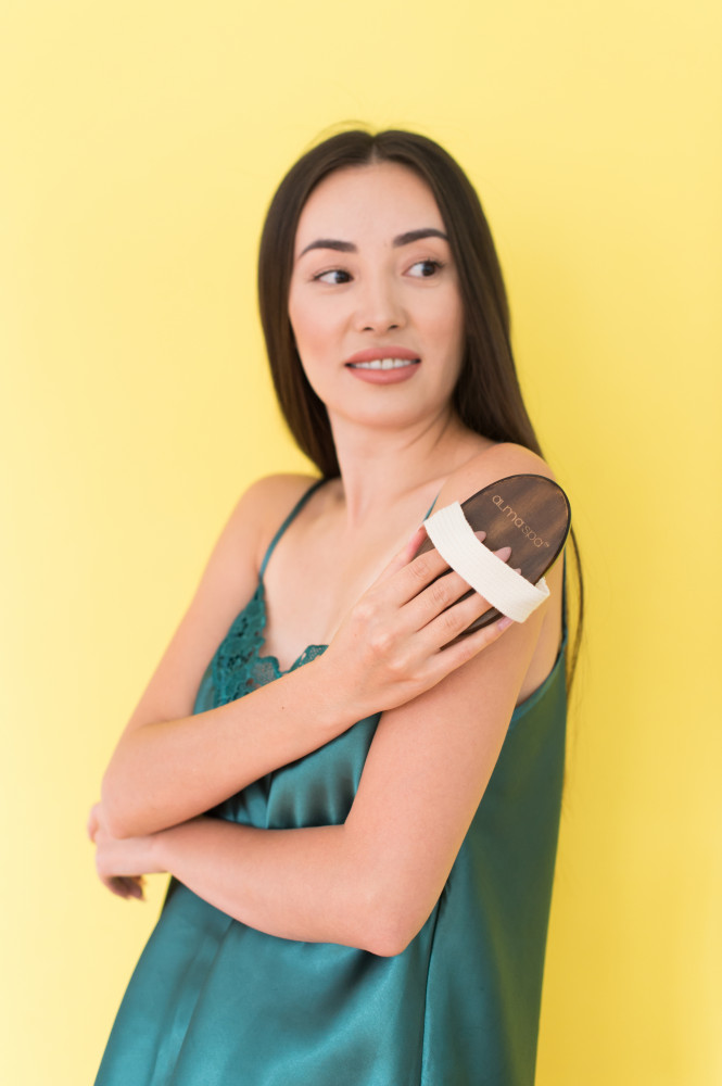 Щетка на ремне с щетиной кабана средней жесткости для сухого массажа. |