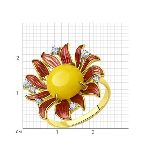 SOKOLOV Кольцо из золочёного серебра с эмалью, фианитами и синтетическим янтарем