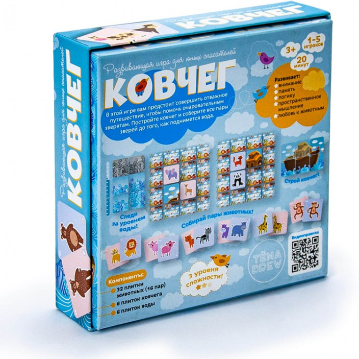 💳 Оплатить за товар можно при получении 🇰🇿 Есть бесплатная доставка по Казахстану от 1 дня 🎁 Копите бонусы с каждой покупки Ковчег — детская командная игра, в ней все действуют сообща. Вам предстоит совершить отважное путешествие, чтобы помочь очаровательным зверятам. Постройте ковчег и соберите все пары зверей до того, как поднимется вода. В игре 3 уровня сложности. Вы можете начать игру с самыми юными спасателями и усложнять ее постепенно. |