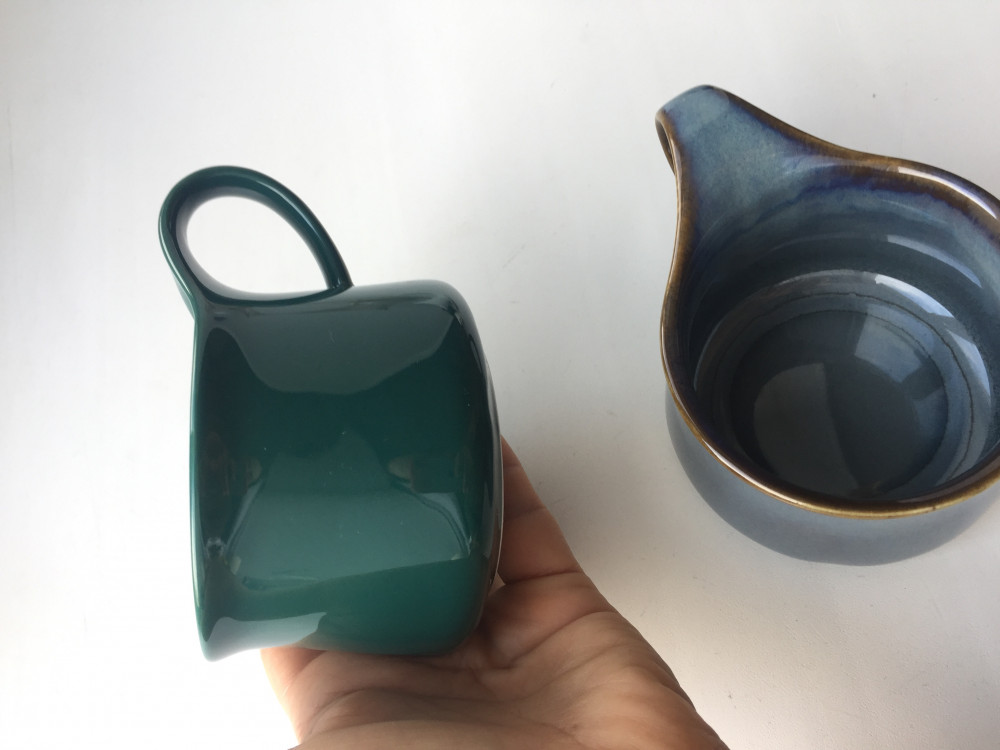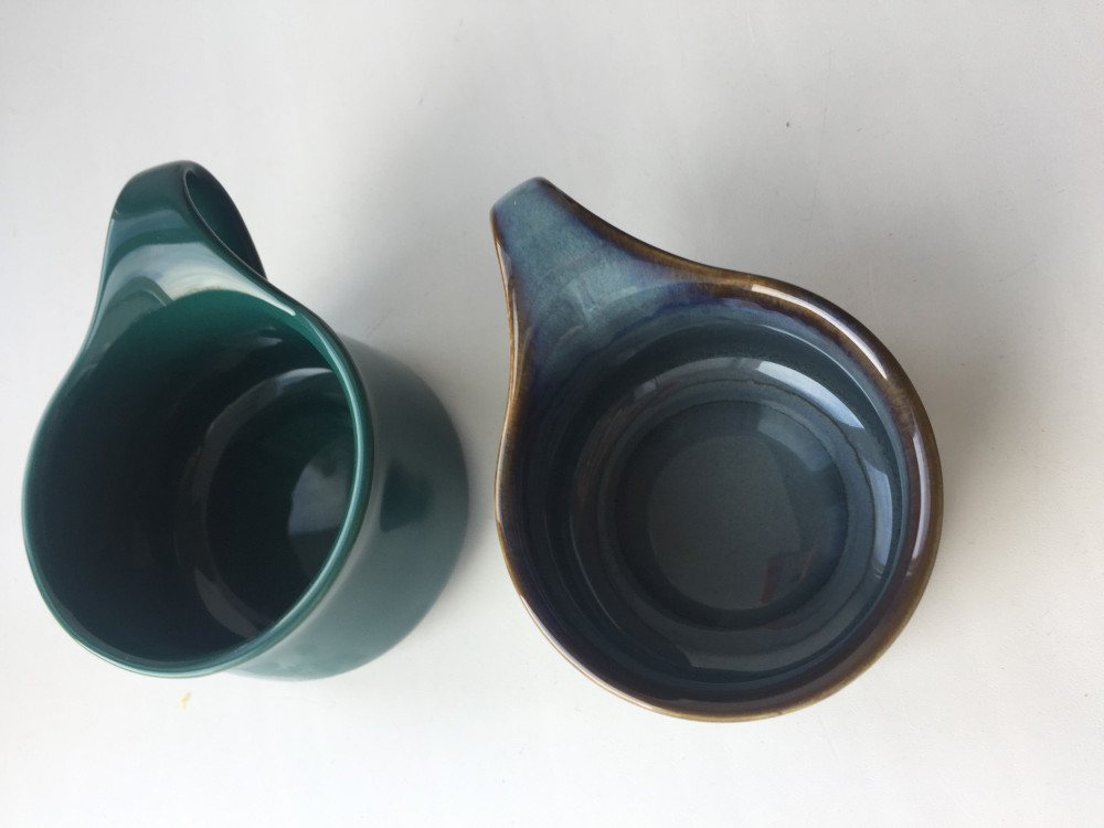 Купили две кружки. Синяя светлее, чем на фото. Легкие. Ручки классные удобные.