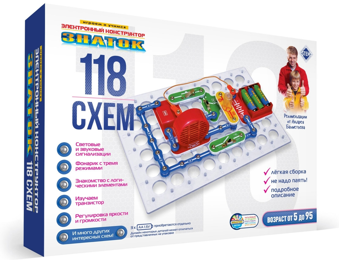 💳 Оплатить за товар можно при получении 🇰🇿 Есть бесплатная доставка по Казахстану от 1 дня 🎁 Копите бонусы с каждой покупки Электронный конструктор начального уровня, позволяющий ребенку познакомиться с удивительным миром электроники. Даже без помощи взрослых, используя очень понятное цветное руководство, всего за несколько минут он или она сможет собрать и испытать схему с практически 100% положительным результатом и удивить родителей, друзей, учителей. |