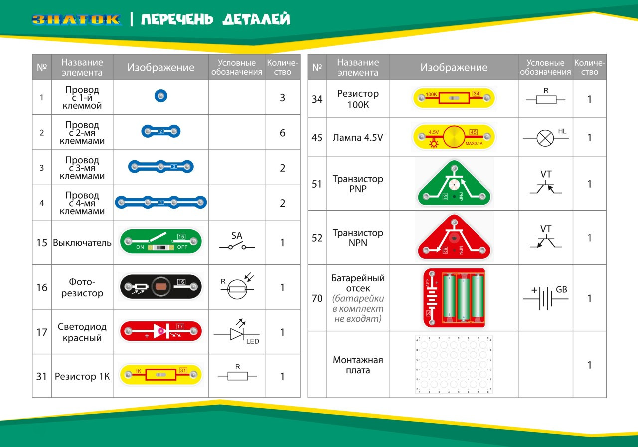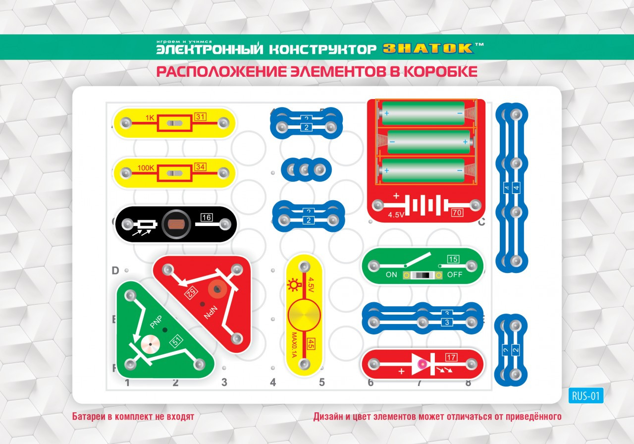 Внимание! Для работы схем необходимы батарейки (не входят в комплект). |