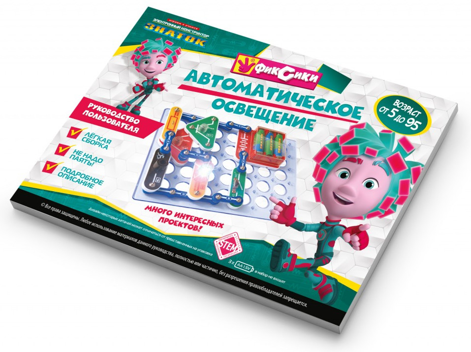 В данный момент этот товар отсутствует в продаже. Возможно, у нас найдется аналогичный или похожий товар здесь. Серия: Фиксики Электронный конструктор начального уровня, позволяющий ребёнку понять, как работают многие «умные вещи» вокруг нас, в частности, системы автоматического освещения, которые экономят электроэнергию и, следовательно, деньги.