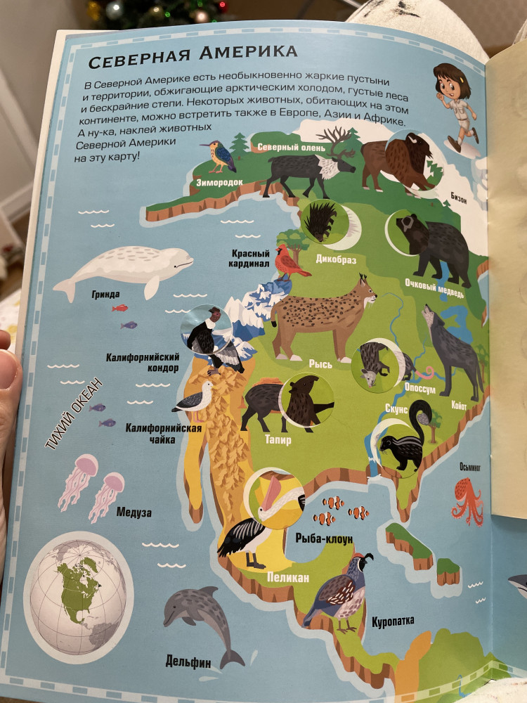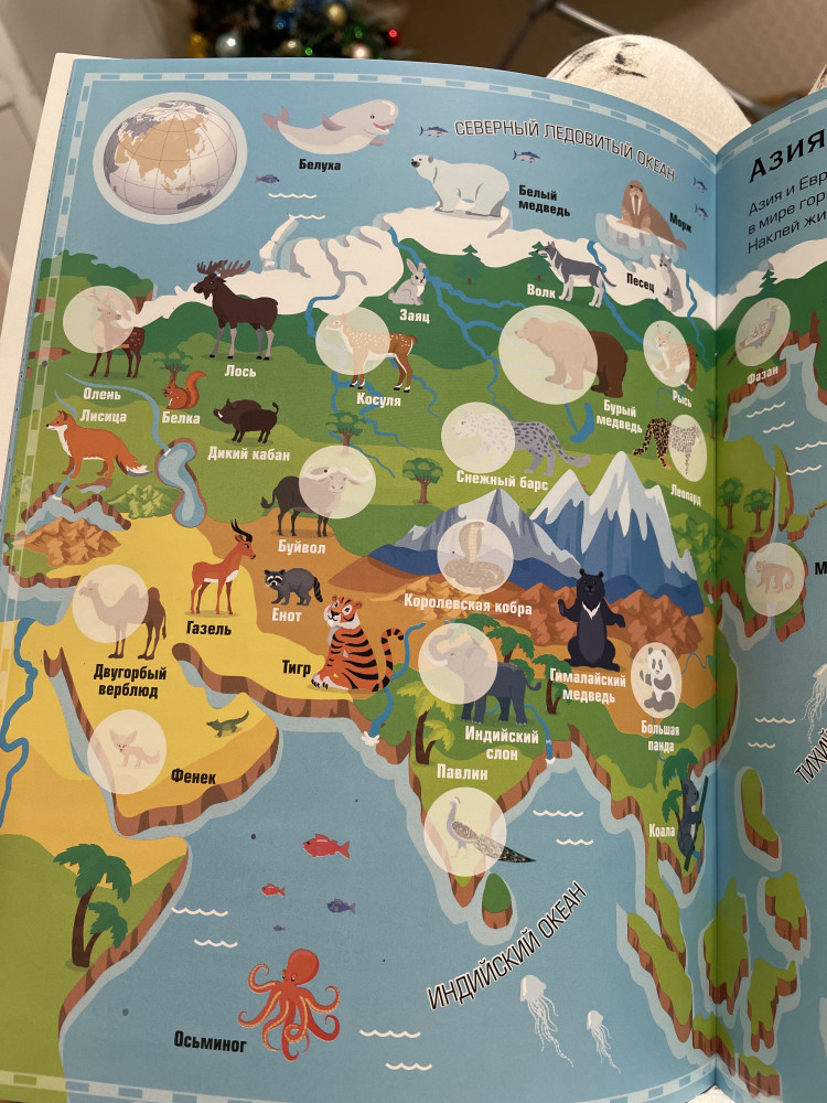 Отличный атлас! Страницы яркие, плотные листы! Наклейки яркие! Ребенку 4 года очень интересно