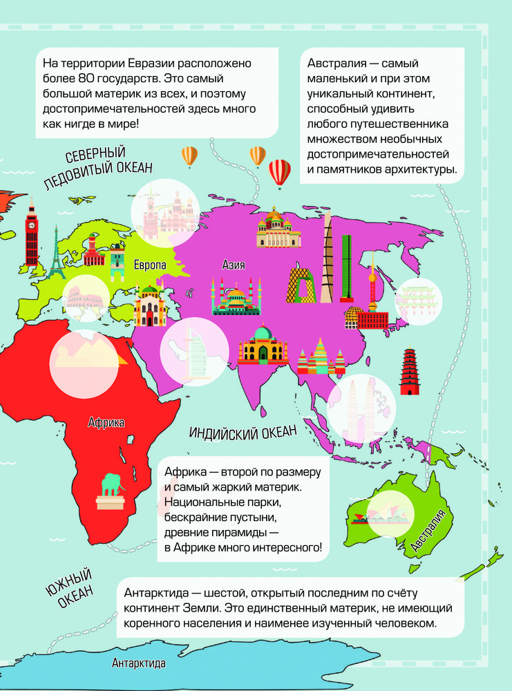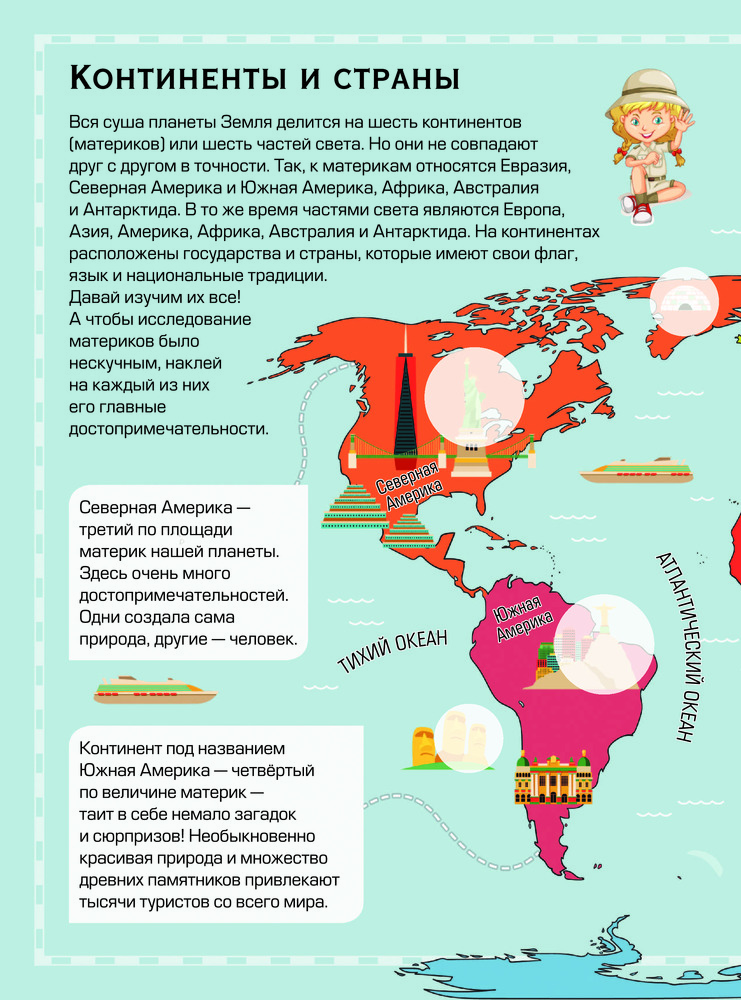 Большой детский атлас с наклейкамиСветлана Сергеевна Пирожник, Юлия Игоревна Дорошенко В данный момент этот товар отсутствует в продаже. Возможно, у нас найдется аналогичный или похожий товар здесь. Серия: Первый атлас с наклейками Этот атлас станет первым путеводителем для вашего ребёнка в путешествии по нашей удивительной планете. Листая его страницы, маленький читатель познакомится с континентами и странами, флагами и достопримечательностями, национальными костюмами и традициями разных народов. Он побывает во всех, даже самых отдалённых уголках света, познакомится с животным и растительным миром. Любопытные факты и яркие картинки сделают это путешествие очень увлекательным и интересным. А многочисленные наклейки превратят изучение Земли в занимательную игру — ваш малыш просто не выпустит из рук этот атлас! |