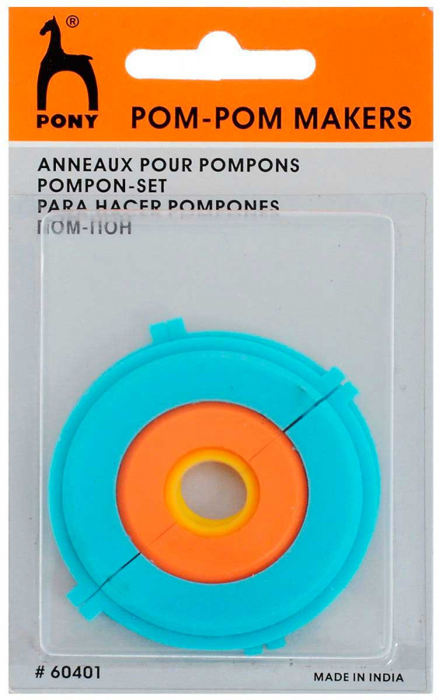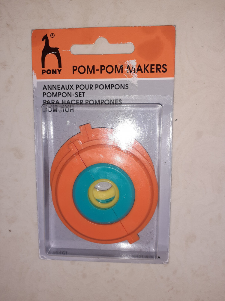 Устройство для изготовления помпонов неплохого качества, но помпоны получаются слишком "худенькие". Пушистый помпон на этом устройстве сделать не получится: две половинки не защелкнутся и затянуть все вместе будет довольно проблематично.