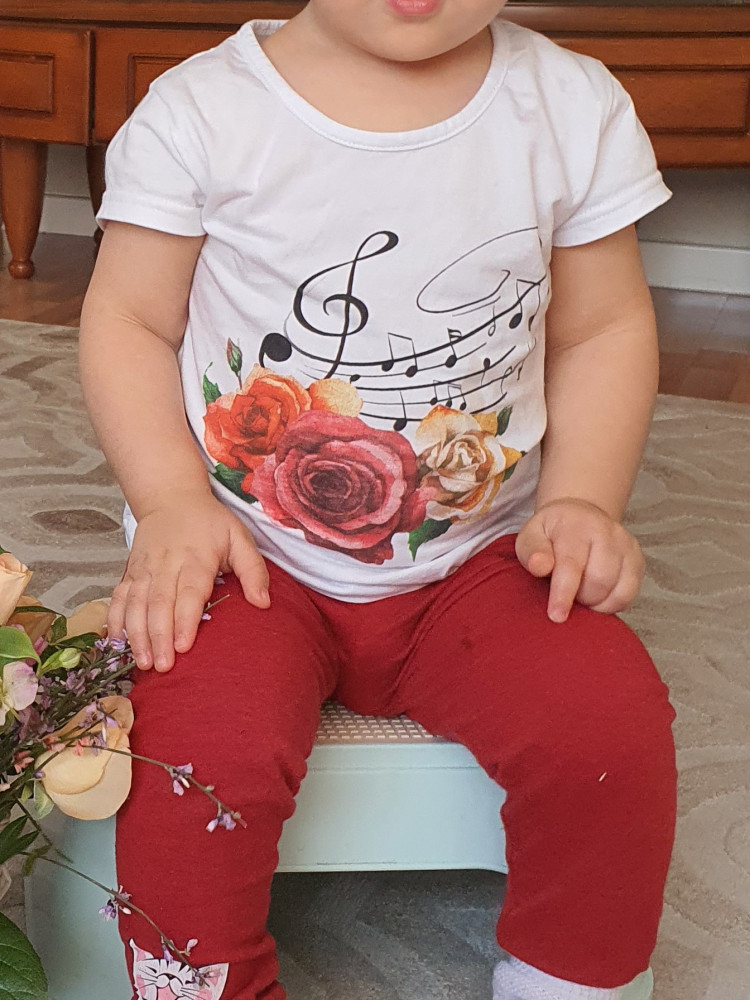 Футболка отличная. Размер в размер. На рост 128-129. Взяли 134 размер. Все подошло. Качество товара соответствует. Хлопок средней плотности. Рассчитана на худенькие девочек. Спасибо за доставку и отличный товар.