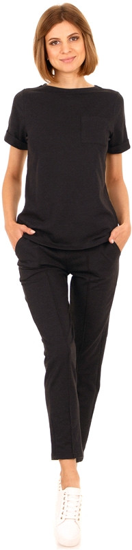 Сам костюм по себе качественно сшит, хорошая посадка. Не линяет, не растягивается. Цвет как на фото. Выглядишь в нем стильно. Стройнит. Но в тёплый день в нем очень жарко. В прохладный короткие рукава. Как-то несообразно погоде. Дома носить, если прохладно. Есть синтетика в составе. В жару хорошо так ощущается. Кто плохо переносит, лучше купить полностью хб.