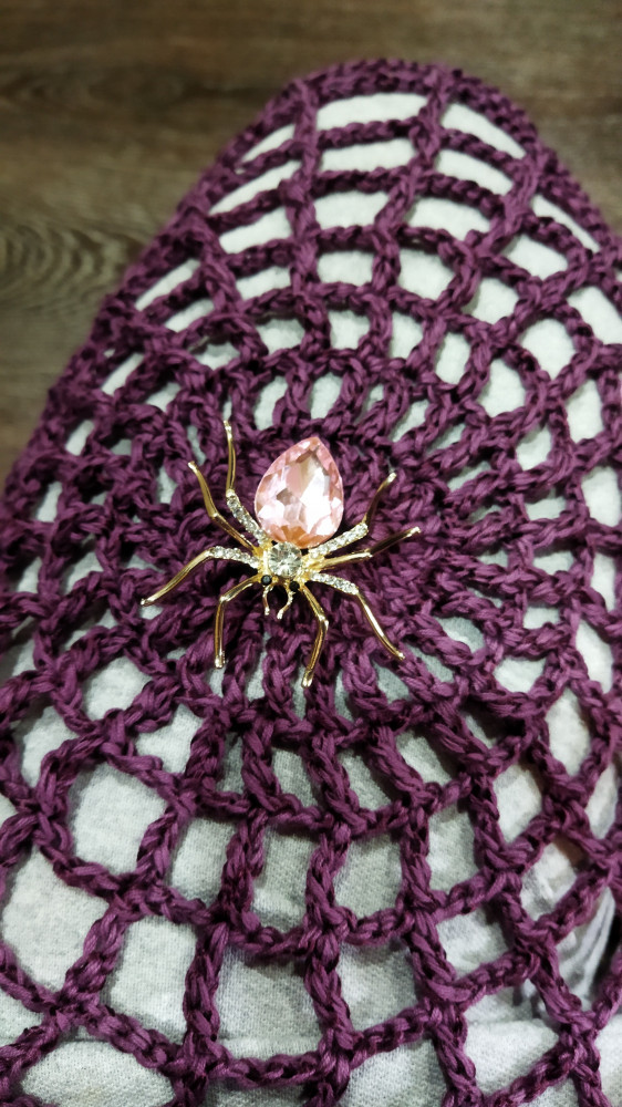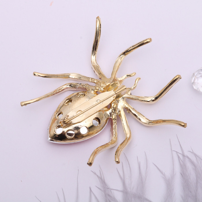 приобрела в подарок подруге, брошь крупная, в реале смориться даже лучше, но не слишком крупная, гламурный паучок делает верх более интересным, подруга оценила