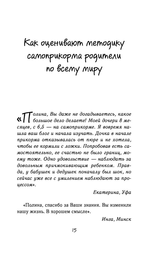 В этой книге вы узнаете всё о самоприкорме, методе введения прикорма, при котором ребенок с самого начала начинает питаться самостоятельно с общего семейного стола. Этот подход уже более десяти лет практикуется в Великобритании (где рекомендован министерством здравоохранения), США, Канаде, Новой Зеландии и многих странах Европы.