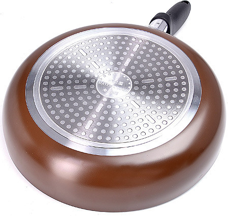 На вид прекрасная сковорода. Нигде не погнута, всё целое. Была доставка курьером. Посуда целая и красивая. Ещё не пользовалась, как испробую напишу дополнительно