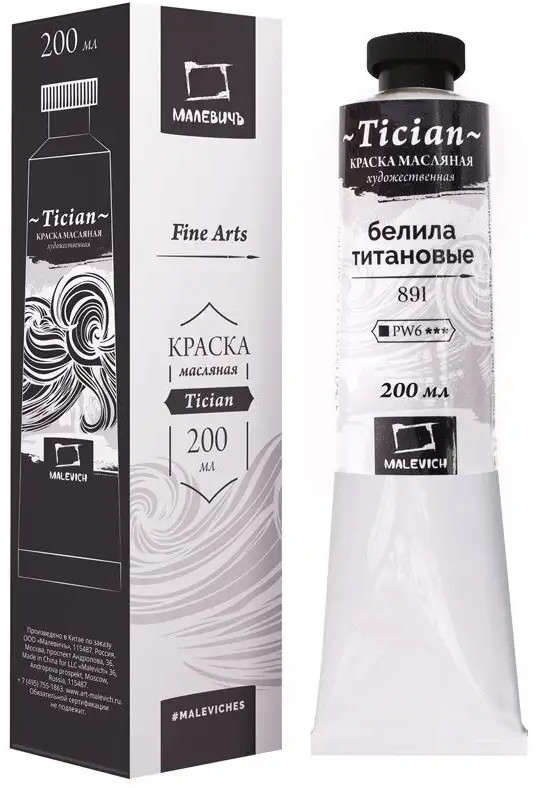 МалевичЪ Краска масляная художественная, 891 белила титановые-25% +136 укрывистость много белил качество