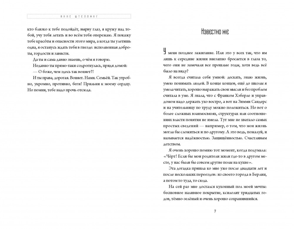 «Тем, что вы молчите, сглатываете и нагоняете туманную завесу, вы нас не щадите, а держите в неведении. Кроме того, приватизируете общественную несправедливость - ибо мы замечаем, что вам плохо, но думаем, что у этого есть личные причины. Что у вас просто не получилось, вы не были достаточно сильными, красивыми, умными и настойчивыми в достижении цели. Или, того хуже, родили нас и ради этого отказались от всего остального». Камерный роман от лица главной героини-писательницы, которая разговаривает со своей дочерью, сначала меня ввёл в ступор. Читать было тяжеловато, иногда терялась во времени, но стоило втянуться как история побежала как ручеёк. Квартирный вопрос - вечная проблема во всех странах мира. Из-за этого можно потерять не только друзей ну и семью. Рези пишет романы о своей жизни, проблемах и окружении, которому это не нравится. Они осуждают ее за это. Вообще каждая страница в книге - это прям новая тема для размышлений. Очень много мыслей и тем затрагивает автор. Я привыкла видеть Германию с одной стороны, где все красиво и успешно, но автор развеяла это миф. Я была сильно удивлена быту в бывшем ГДР. Отличная книга, но не для лёгкого чтения.