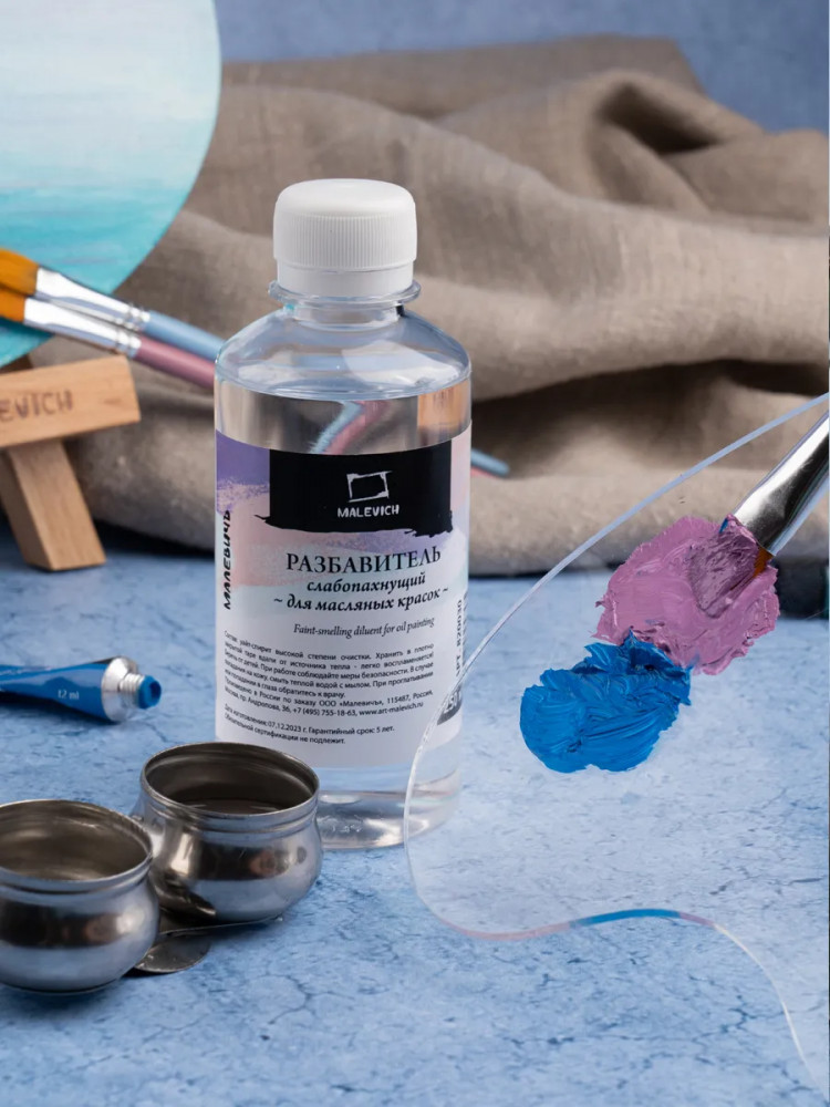 МалевичЪ Разбавитель для масляных красокразбавление слабый запах объём надёжность В данный момент этот товар отсутствует в продаже. Возможно, у нас найдется аналогичный или похожий товар здесь. Разбавитель на основе очищенного уайт-спирита отлично подойдет для работы в закрытых помещения и маленьких студиях, а так же будет по достоинству оценен чувствительными к запахам людьми. |