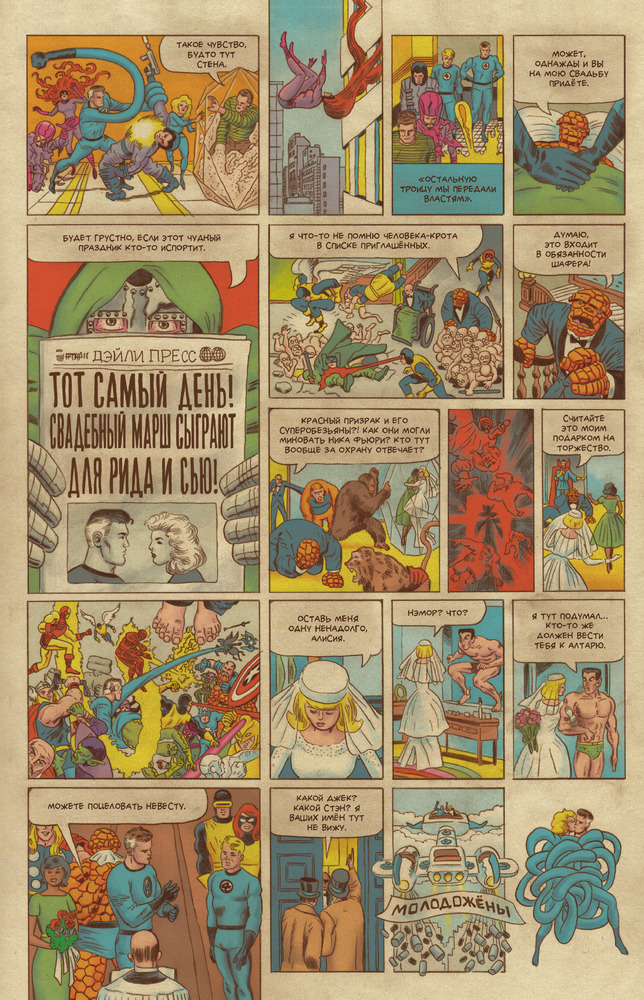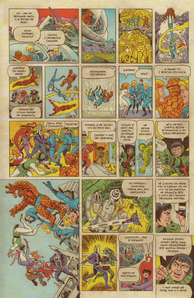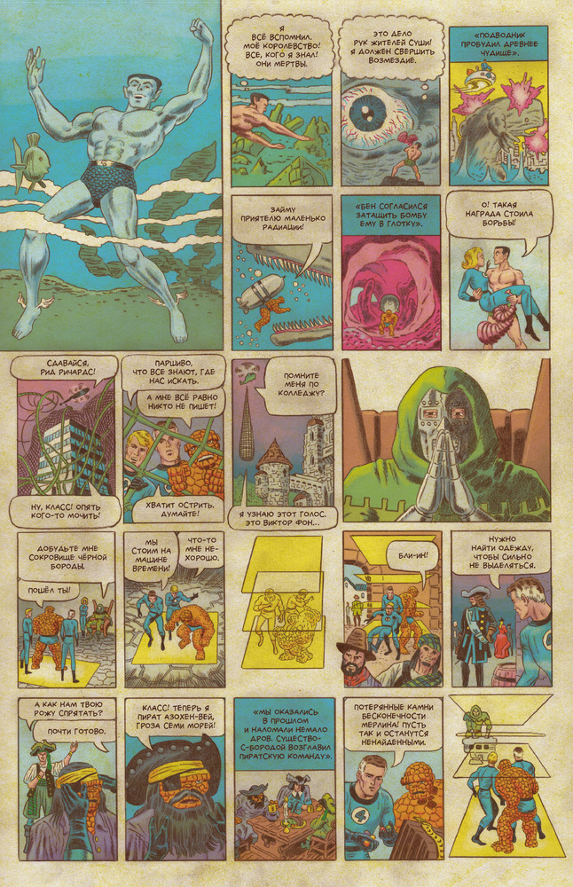 Фантастическая Четвёрка. Великий замысел #1В данный момент этот товар отсутствует в продаже. Возможно, у нас найдется аналогичный или похожий товар здесь. Серия: Герои Marvel (обложка) Том Шиоли («Трансформеры против Джи Ай Джо») представляет вам свой взгляд на историю первой супергеройской семьи. Вместе с наблюдателем Уату вы станете свидетелями знаменитого путешествия в космос (не спешите пропускать первую страницу комикса, всё не так просто как кажется!), появления Человека-крота и его кротоидов, Нэмора, Нелюдей, Доктора Дума, Чёрной Пантеры, узнаете как ФЧ связана с древним Египтом, сокровищами знаменитого пирата по прозвищу Чёрная борода, камнями бесконечности и древними колдунами и тайными обществами. Том Шиоли в очередной раз доказывает, что не зря считается одним из главных талантов комикс-индустрии, он ловко ведёт читателя через страницы, набитые огромным количеством кадров и событий, но при этом не теряет нити повествования и рассказывают подробную историю приключений Рида, Сью, Джонни и Бена! |