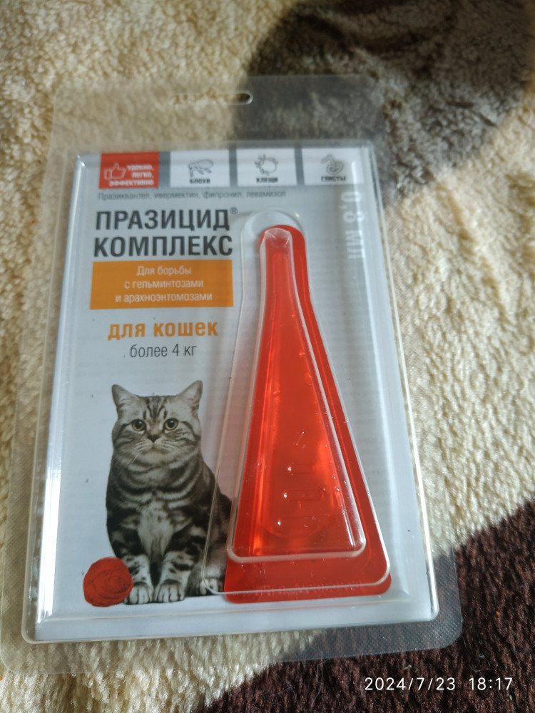 Apicenna Капли от блох и клещей для кошекВ данный момент этот товар отсутствует в продаже. Возможно, у нас найдется аналогичный или похожий товар здесь. Серия: Празицид-Комплекс Празицид-комплекс назначают взрослым собакам и кошкам, щенкам и котятам, начиная с 2-месячного возраста, для лечения и профилактики кишечных нематодозов, цестодозов, энтомозов, отодектоза, саркоптоза, нотоэдроза, демодекоза и защиты животных от нападения иксодовых клещей. |