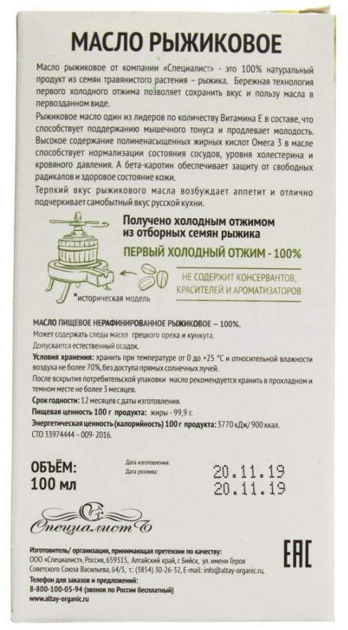 Отзывы «Масло рыжиковое»