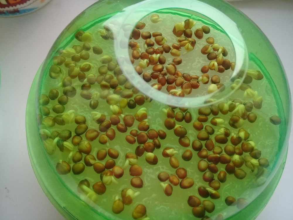 интересный процесс, высадила 1/4 часть семян из пакетика, на фото результат на 4-е сутки