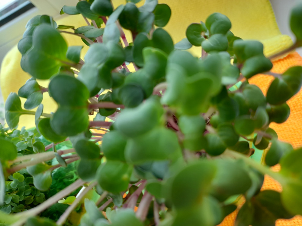 редис начал расти чуть не в этот же день, буквально за несколько дней вымахал, вкус как будто ешь редис, присутствует терпкость, острота как у редиса