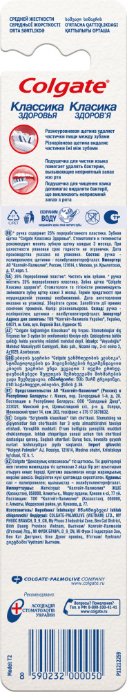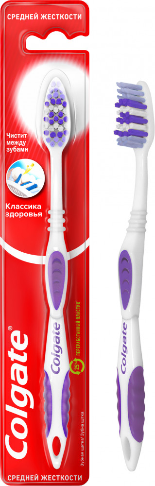 Colgate Щетка зубная многофункциональная средней жесткости «Классика здоровья»+18 умеренная жёсткость удобная ручка стойкая щетина