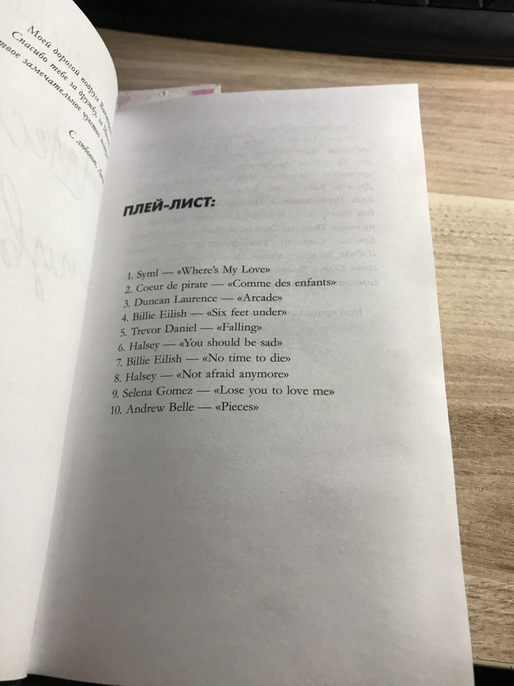 Боже боже боже , ВАААУ . Эта книга пару раз разбило мое сердце 💔 Очень переживала за героев и каждый раз думала , что сделала бы я . Я однозначно советую эту книгу . И да ещё плейлист песен в книге тоже шикарен