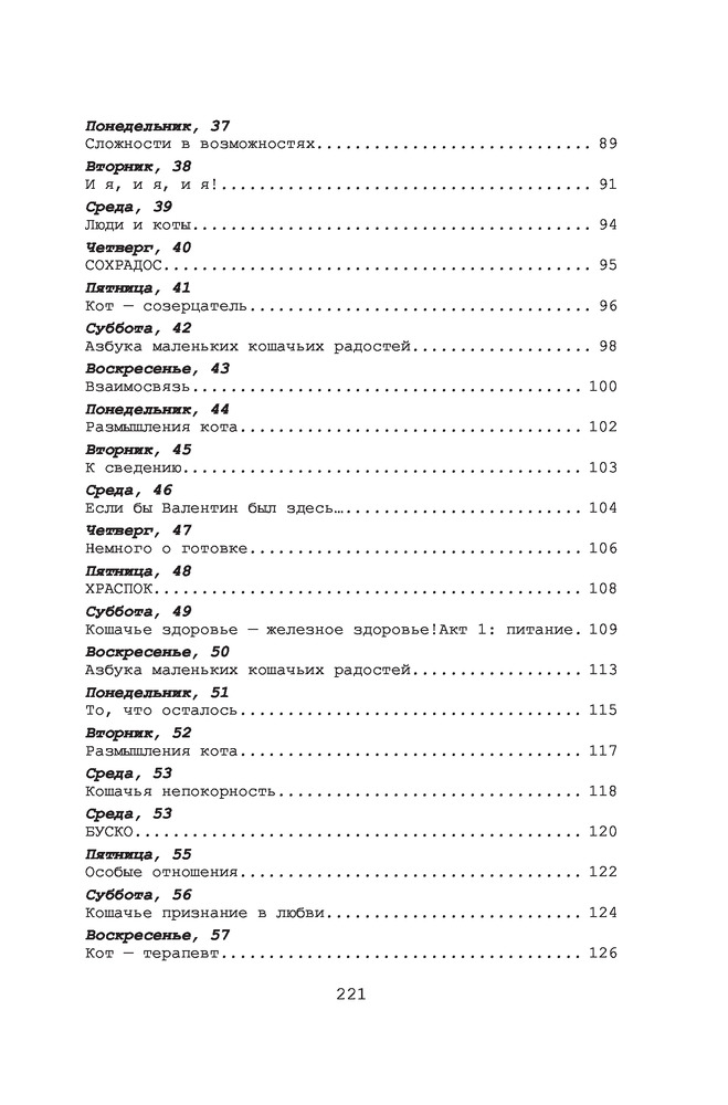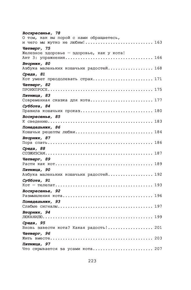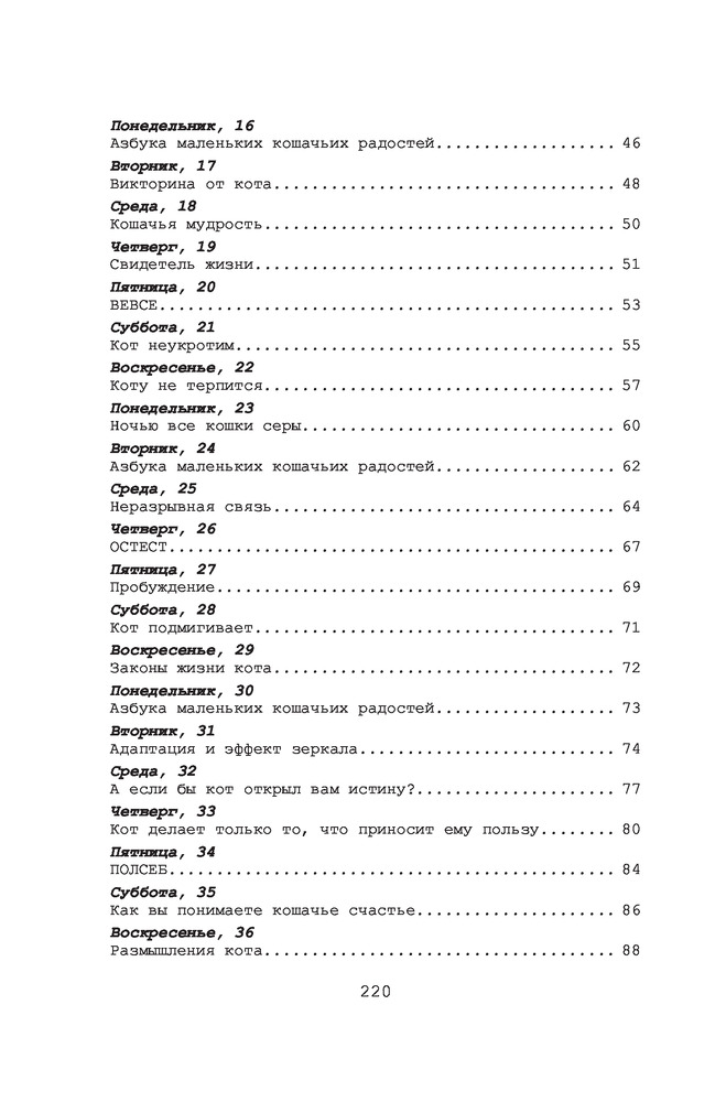 Серия: Психология Преодолеть свои страхи, никогда не сдаваться, верить в себя и заново выстроить свою жизнь, вдохновляясь примером кота и его житейскими мудростями. Перелистывая страницу за страницей, мы убеждаемся в безошибочности советов Зигги, разрушающих барьеры между людьми и животными, и восхищаемся ими.Вдохновляйтесь, думайте и действуйте — это простейший способ получать удовольствие от жизни каждый день. |