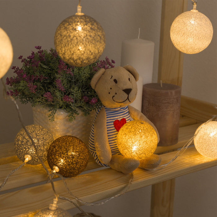 Милая уютная гирлянда, шарики хоть и хрупкие на вид - на деле оказались довольно прочные. Светит мягко.