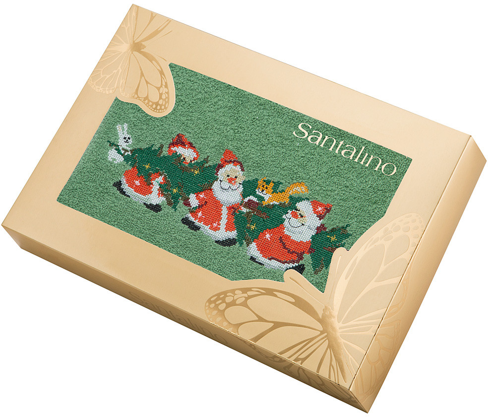 Задумка хорошая, а исполнение не очень. Полотенце мягкое, хорошо впитывает влагу, дед-морозики симпатичные. Подарочная коробка аккуратная. Но, цвет бледный, декоративная тесьма пришита на расстоянии от края и не держит форму - некрасиво заворачивается внутрь. Поэтому на подарочное не тянет. Если только тесьму перешить или прострочить ближе к краю